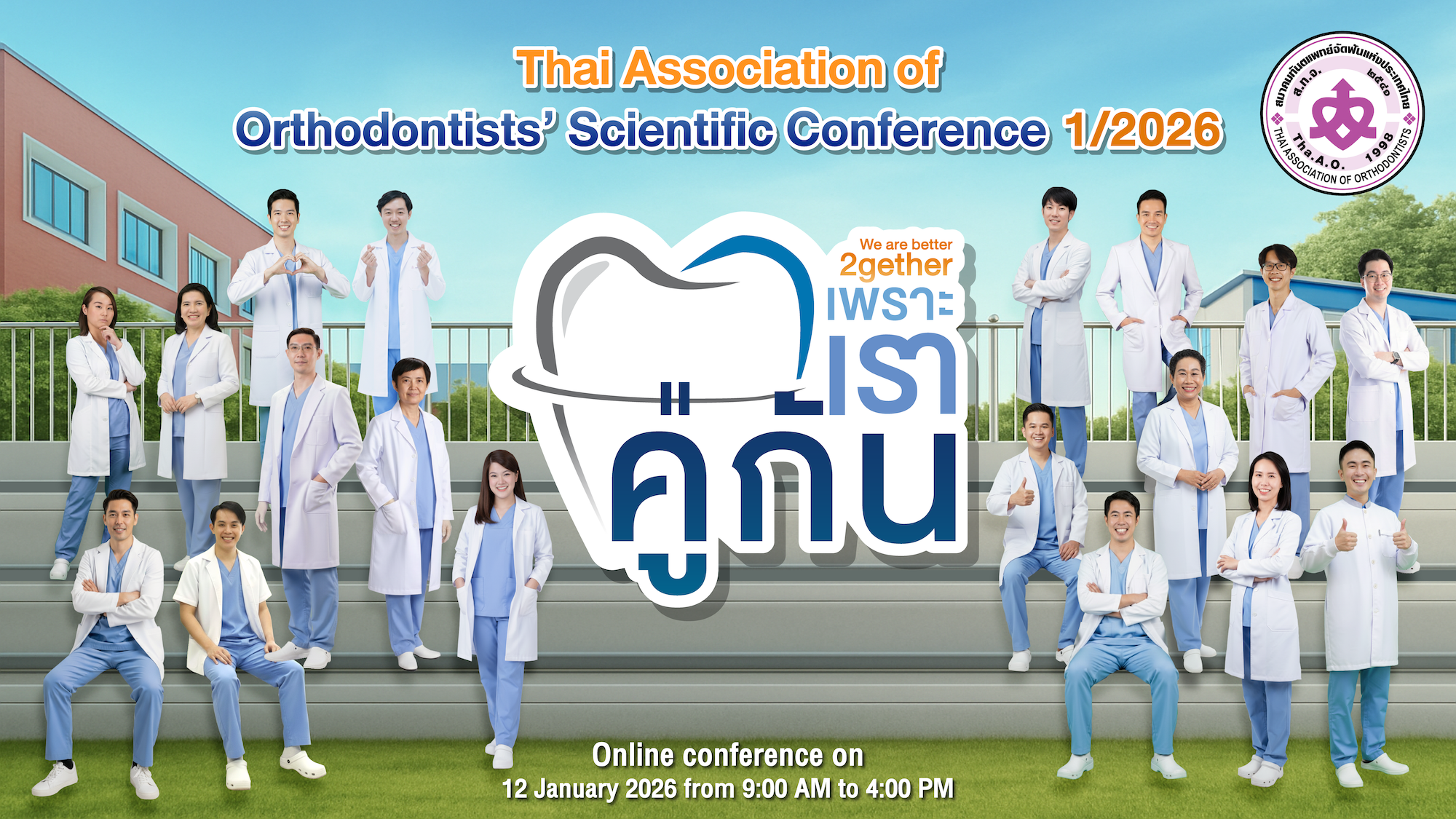 Thai Association of Orthodontists’ Scientific Conference 1/2026 การเข้าชม : 2659 ครั้ง WE ARE BETTER 2GETHER เพราะเราคู่กัน 12 January 2026 Online Conference from 9.00-16.00 จดหมายเชิญประชุม Registration / ลงทะเบียนงานประชุมวิชาการ Share on : Tagged :ประชุมในประเทศ